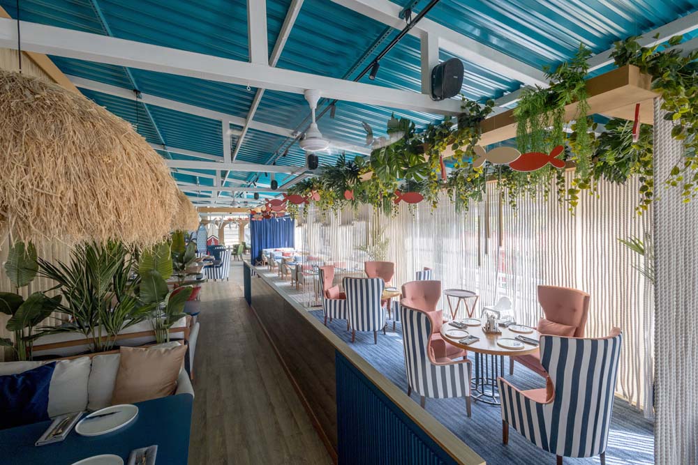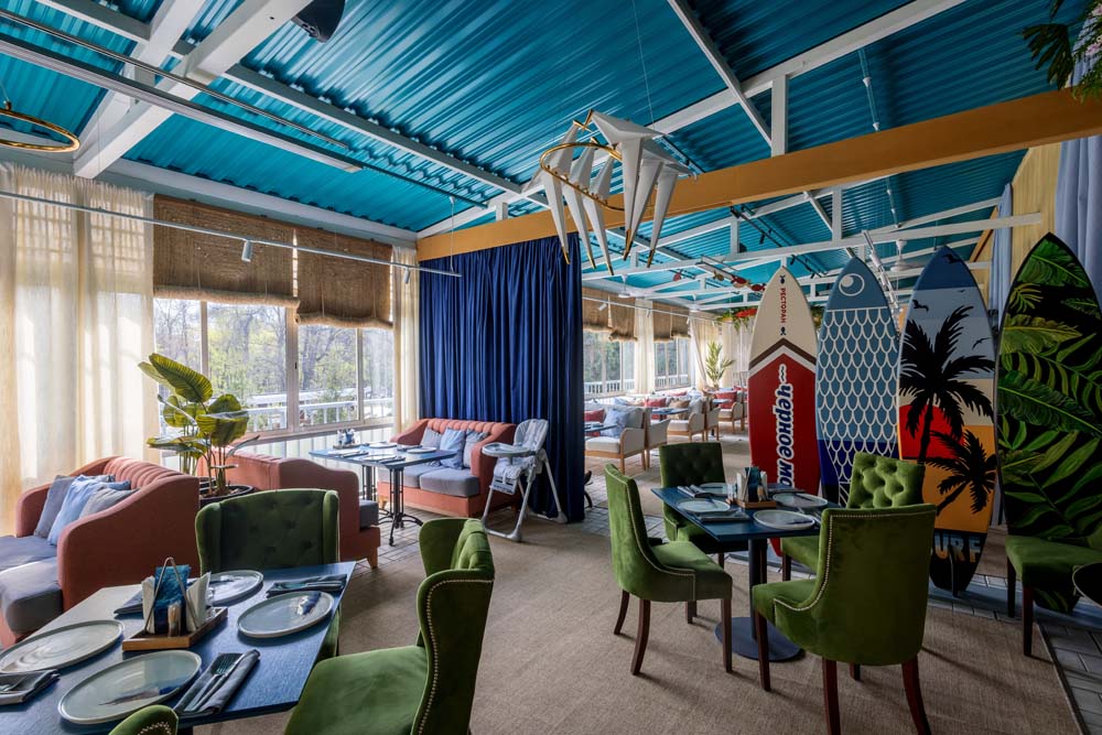 Могли бы вы представить, что вместо привычной барной стойки у нас посередине зала стоит огромная лодка? А рядом с ней трехметровый аквариум, где обитает разнообразная живность, готовая прекрасно украсить ваше блюдо?